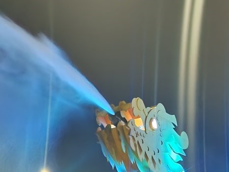 용의 입에서 거대한 불이 터져 나오고, 이어서 물줄기가 뿜어져 나오는데 그 순간은 정말