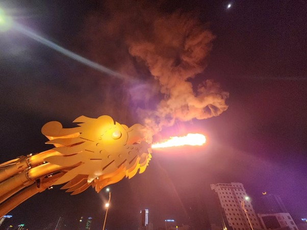 다낭 용다리 불쇼는 매주 주말 밤마다 펼쳐지는 스펙터클한 불과 물의 쇼로,